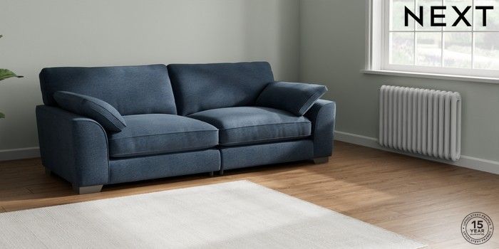 7.3.1 Buy Stamford Grand Relaxed Sit 4 Seater Sofa Ripple Chenille Dark Blue Large Square Angle - Gunmetal from the Seasons online shop Click here to use our website with more accessibility support, for example screen readers