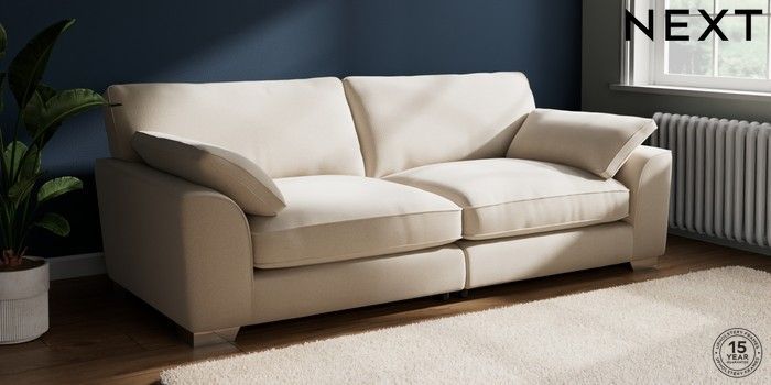 7.3.1 Buy Stamford Grand Relaxed Sit 4 Seater Sofa Studio Chenille Oyster Large Square Angle - Chrome Metal from the Seasons online shop Click here to use our website with more accessibility support, for example screen readers