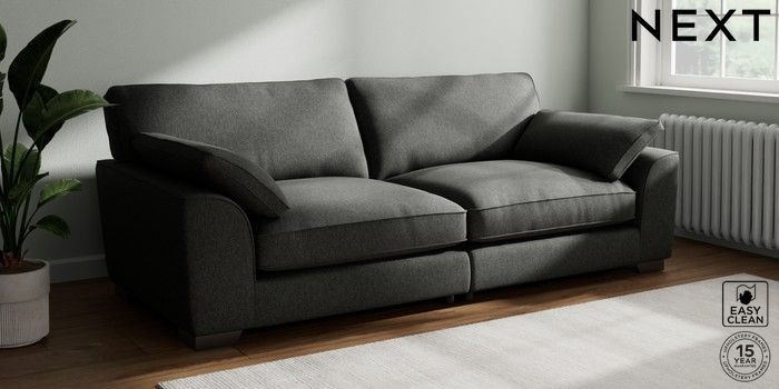 7.3.1 Buy Stamford Grand Relaxed Sit 4 Seater Sofa Tweedy Blend Easy Clean Charcoal Grey Large Square Angle - Gunmetal from the Seasons online shop
