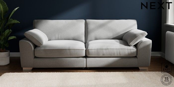 7.3.1 Buy Stamford Grand Relaxed Sit 4 Seater Sofa Tweedy Blend Easy Clean Light Silver Grey Large Square Angle - Chrome Metal from the Seasons online shop Click here to use our website with more accessibility support, for example screen readers