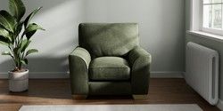 7.3.1 Buy Stamford Grand Relaxed Sit Armchair Boucle Chenille Dark Moss Green Square Angle - Brushed Brass from the Seasons online shop Click here to use our website with more accessibility support, for example screen readers