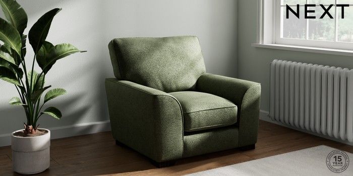 7.3.1 Buy Stamford Grand Relaxed Sit Armchair Boucle Chenille Dark Moss Green Square Angle - Dark from the Seasons online shop Click here to use our website with more accessibility support, for example screen readers