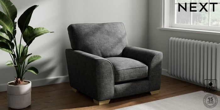 7.3.1 Buy Stamford Grand Relaxed Sit Armchair Boucle Weave Easy Clean Charcoal Grey Square Angle - Light from the Seasons online shop Click here to use our website with more accessibility support, for example screen readers