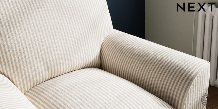 7.3.1 Buy Stamford Grand Relaxed Sit Armchair Chenille Stripe Natural Square Angle - Chrome Metal from the Seasons online shop Click here to use our website with more accessibility support, for example screen readers