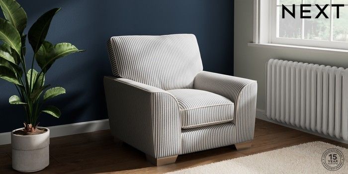 7.3.1 Buy Stamford Grand Relaxed Sit Armchair Chenille Stripe Slate Blue Square Angle - Chrome Metal from the Seasons online shop Click here to use our website with more accessibility support, for example screen readers