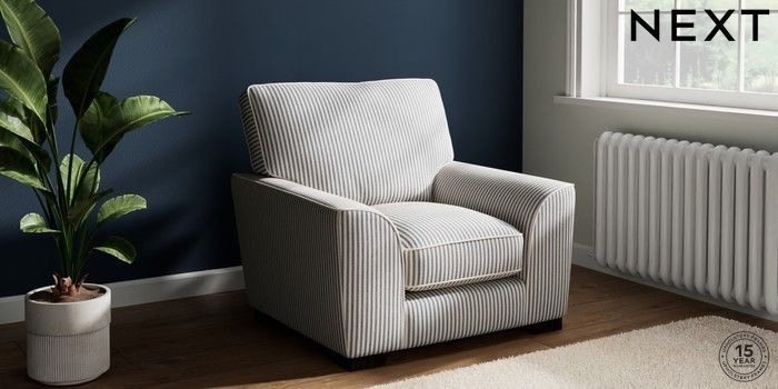 7.3.1 Buy Stamford Grand Relaxed Sit Armchair Chenille Stripe Slate Blue Square Angle - Dark from the Seasons online shop Click here to use our website with more accessibility support, for example screen readers