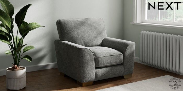 7.3.1 Buy Stamford Grand Relaxed Sit Armchair Chunky Chenille Dark Grey Square Angle - Brushed Brass from the Seasons online shop Click here to use our website with more accessibility support, for example screen readers