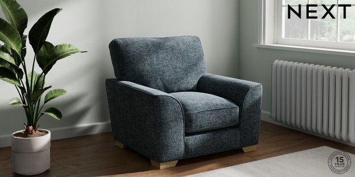 7.3.1 Buy Stamford Grand Relaxed Sit Armchair Chunky Chenille Dark Navy Blue Square Angle - Light from the Seasons online shop Click here to use our website with more accessibility support, for example screen readers