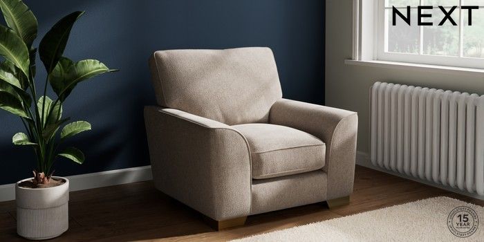 7.3.1 Buy Stamford Grand Relaxed Sit Armchair Chunky Chenille Light Dove Square Angle - Brushed Brass from the Seasons online shop Click here to use our website with more accessibility support, for example screen readers