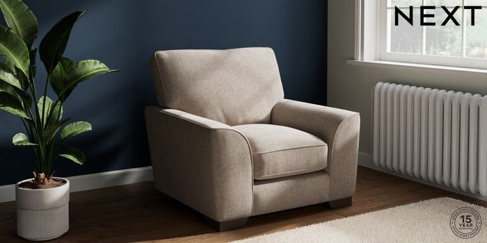 7.3.1 Buy Stamford Grand Relaxed Sit Armchair Chunky Chenille Light Dove Square Angle - Gunmetal from the Seasons online shop Click here to use our website with more accessibility support, for example screen readers