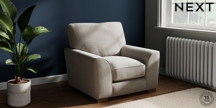 7.3.1 Buy Stamford Grand Relaxed Sit Armchair Chunky Weave Dove Grey Square Angle - Mid from the Seasons online shop Click here to use our website with more accessibility support, for example screen readers