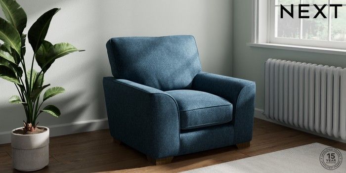 7.3.1 Buy Stamford Grand Relaxed Sit Armchair Cotswold Chenille Dark Blue Square Angle - Mid from the Seasons online shop Click here to use our website with more accessibility support, for example screen readers