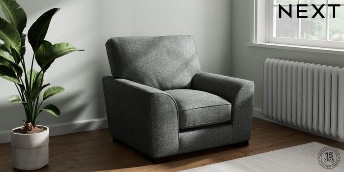 7.3.1 Buy Stamford Grand Relaxed Sit Armchair Cotswold Chenille Dark Grey Square Angle - Dark from the Seasons online shop Click here to use our website with more accessibility support, for example screen readers