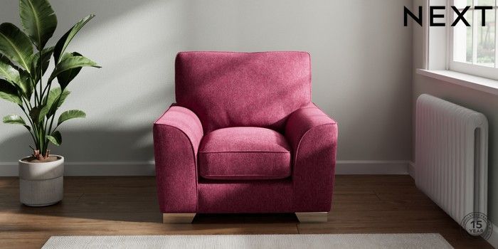 7.3.1 Buy Stamford Grand Relaxed Sit Armchair Cotswold Chenille Dark Raspberry Pink Square Angle - Chrome Metal from the Seasons online shop Click here to use our website with more accessibility support, for example screen readers