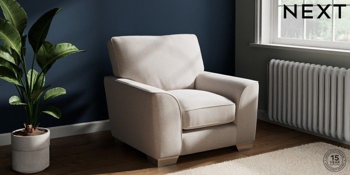 7.3.1 Buy Stamford Grand Relaxed Sit Armchair Cotswold Chenille Oyster Square Angle - Chrome Metal from the Seasons online shop Click here to use our website with more accessibility support, for example screen readers