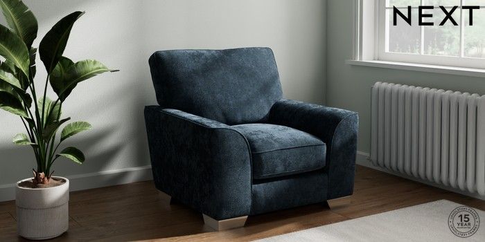 7.3.1 Buy Stamford Grand Relaxed Sit Armchair Distressed Velour Midnight Blue Square Angle - Chrome Metal from the Seasons online shop Click here to use our website with more accessibility support, for example screen readers