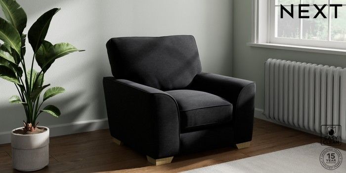 7.3.1 Buy Stamford Grand Relaxed Sit Armchair Fine Chenille Easy Clean Black Square Angle - Light from the Seasons online shop Click here to use our website with more accessibility support, for example screen readers