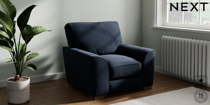 7.3.1 Buy Stamford Grand Relaxed Sit Armchair Fine Chenille Easy Clean Dark Navy Blue Square Angle - Mid from the Seasons online shop Click here to use our website with more accessibility support, for example screen readers