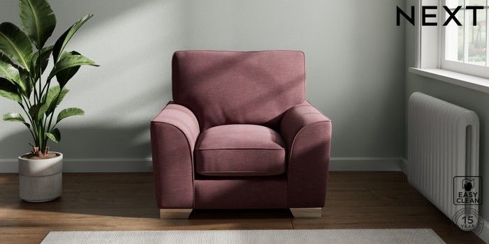 7.3.1 Buy Stamford Grand Relaxed Sit Armchair Fine Chenille Easy Clean Mid Mulberry Purple Square Angle - Chrome Metal from the Seasons online shop