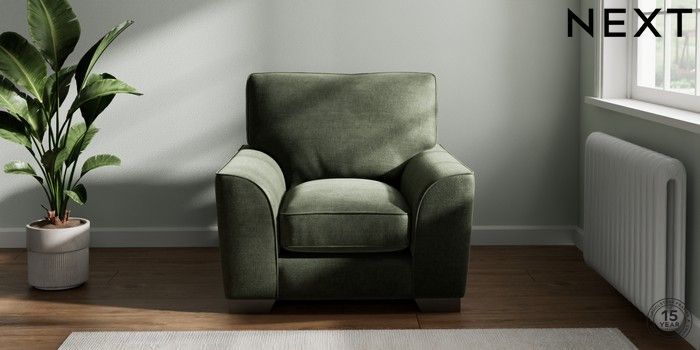 7.3.1 Buy Stamford Grand Relaxed Sit Armchair Luxe Chenille Mid Green Square Angle - Gunmetal from the Seasons online shop Click here to use our website with more accessibility support, for example screen readers