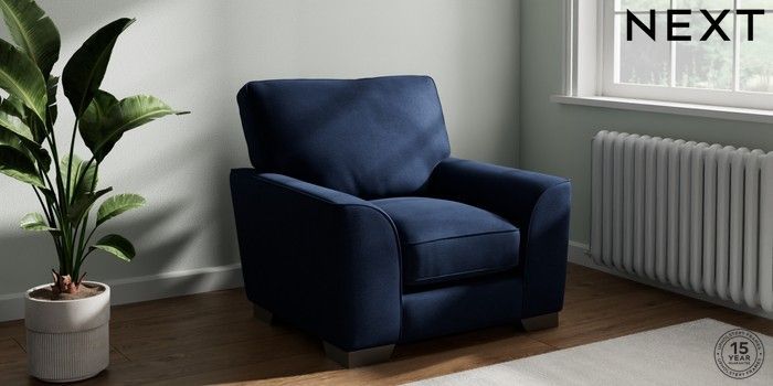 7.3.1 Buy Stamford Grand Relaxed Sit Armchair Luxe Chenille Navy Blue Square Angle - Gunmetal from the Seasons online shop Click here to use our website with more accessibility support, for example screen readers