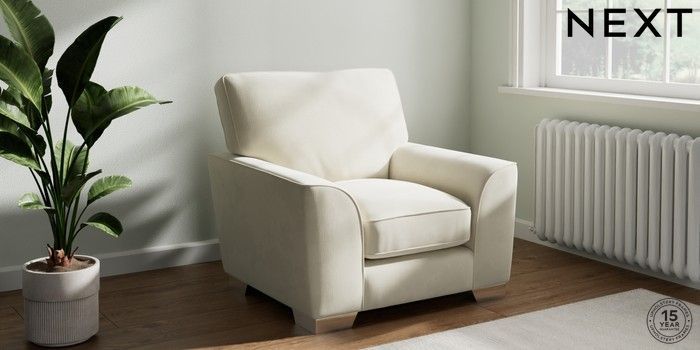 7.3.1 Buy Stamford Grand Relaxed Sit Armchair Luxe Chenille Oyster Square Angle - Chrome Metal from the Seasons online shop Click here to use our website with more accessibility support, for example screen readers