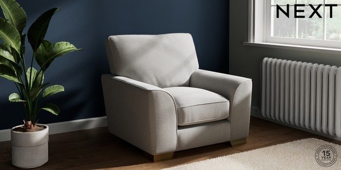 7.3.1 Buy Stamford Grand Relaxed Sit Armchair Natural Mix Light Grey Square Angle - Brushed Brass from the Seasons online shop Click here to use our website with more accessibility support, for example screen readers