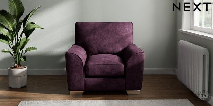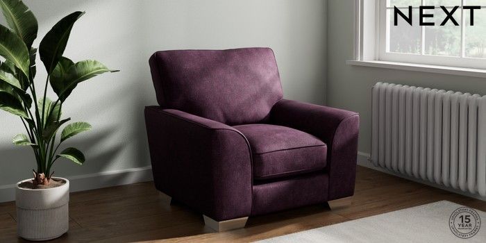 7.3.1 Buy Stamford Grand Relaxed Sit Armchair Plush Chenille Dark Plum Purple Square Angle - Chrome Metal from the Seasons online shop