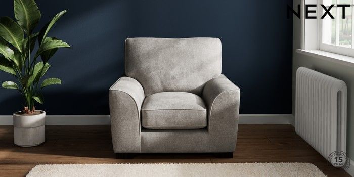 7.3.1 Buy Stamford Grand Relaxed Sit Armchair Plush Chenille Light Grey Square Angle - Dark from the Seasons online shop Click here to use our website with more accessibility support, for example screen readers