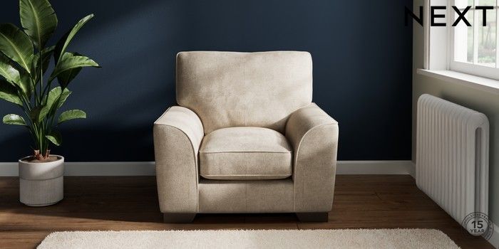 7.3.1 Buy Stamford Grand Relaxed Sit Armchair Plush Chenille Light Natural Square Angle - Gunmetal from the Seasons online shop Click here to use our website with more accessibility support, for example screen readers