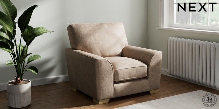 7.3.1 Buy Stamford Grand Relaxed Sit Armchair Plush Chenille Mid Natural Square Angle - Light from the Seasons online shop Click here to use our website with more accessibility support, for example screen readers
