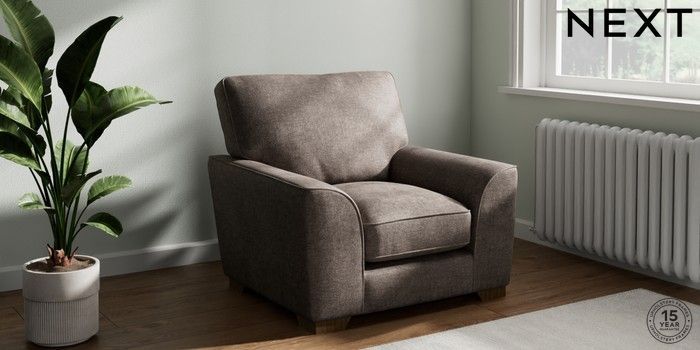 7.3.1 Buy Stamford Grand Relaxed Sit Armchair Plush Chenille Mink Brown Square Angle - Mid from the Seasons online shop Click here to use our website with more accessibility support, for example screen readers