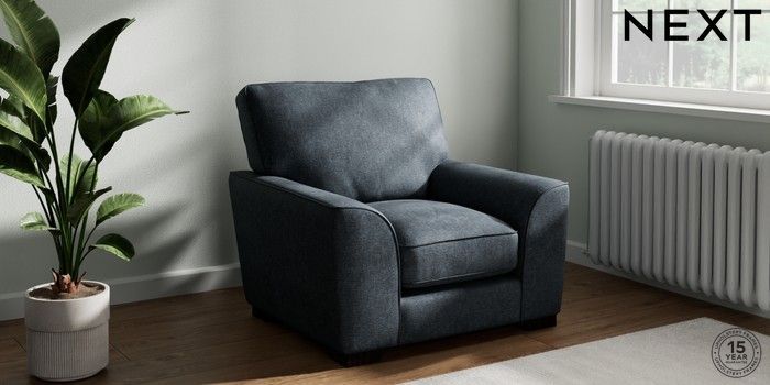 7.3.1 Buy Stamford Grand Relaxed Sit Armchair Plush Chenille Slate Blue Square Angle - Dark from the Seasons online shop Click here to use our website with more accessibility support, for example screen readers