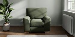7.3.1 Buy Stamford Grand Relaxed Sit Armchair Relaxed Linen Look Dark Green Square Angle - Chrome Metal from the Seasons online shop