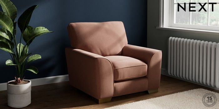 7.3.1 Buy Stamford Grand Relaxed Sit Armchair Relaxed Linen Look Light Rust Brown Square Angle - Brushed Brass from the Seasons online shop Click here to use our website with more accessibility support, for example screen readers