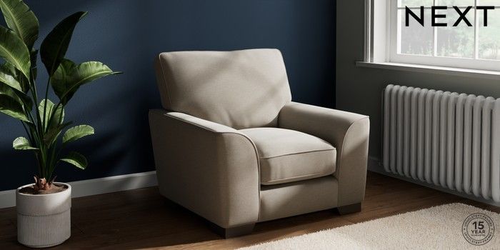 7.3.1 Buy Stamford Grand Relaxed Sit Armchair Ripple Chenille Light Natural Square Angle - Gunmetal from the Seasons online shop Click here to use our website with more accessibility support, for example screen readers