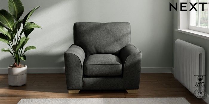 7.3.1 Buy Stamford Grand Relaxed Sit Armchair Tweedy Blend Easy Clean Charcoal Grey Square Angle - Light from the Seasons online shop Click here to use our website with more accessibility support, for example screen readers
