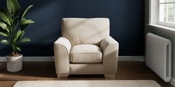 7.3.1 Buy Stamford Grand Relaxed Sit Armchair Tweedy Blend Easy Clean Oyster Square Angle - Chrome Metal from the Seasons online shop
