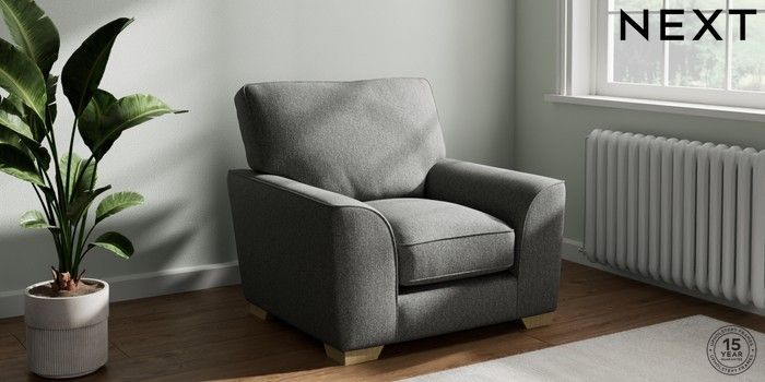 7.3.1 Buy Stamford Grand Relaxed Sit Armchair Tweedy Chenille Dark Grey Square Angle - Light from the Seasons online shop Click here to use our website with more accessibility support, for example screen readers