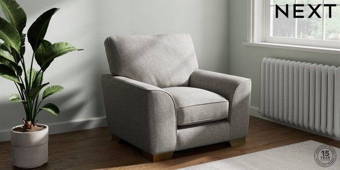 7.3.1 Buy Stamford Grand Relaxed Sit Armchair Tweedy Chenille Mid Grey Square Angle - Brushed Brass from the Seasons online shop Click here to use our website with more accessibility support, for example screen readers