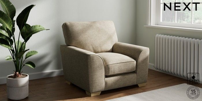7.3.1 Buy Stamford Grand Relaxed Sit Armchair Woven Chenille Easy Clean Mid Natural Square Angle - Light from the Seasons online shop Click here to use our website with more accessibility support, for example screen readers