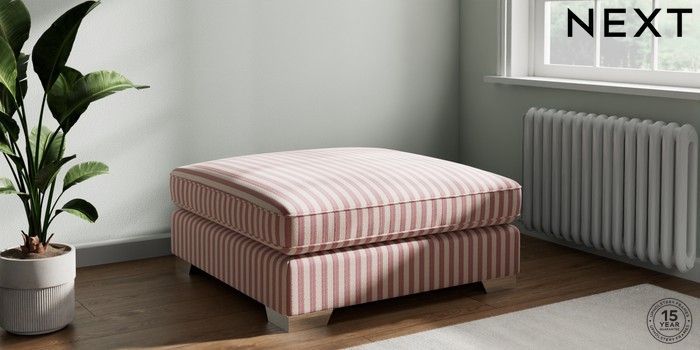 7.3.1 Buy Stamford Grand Relaxed Sit Extra Large Footstool Bold Chenille Stripe Dark Pink Square Angle - Chrome Metal from the Seasons online shop Click here to use our website with more accessibility support, for example screen readers