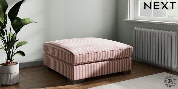 7.3.1 Buy Stamford Grand Relaxed Sit Extra Large Footstool Bold Chenille Stripe Dark Pink Square Angle - Gunmetal from the Seasons online shop Click here to use our website with more accessibility support, for example screen readers