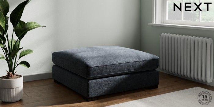 7.3.1 Buy Stamford Grand Relaxed Sit Extra Large Footstool Boucle Chenille Dark Slate Blue Square Angle - Dark from the Seasons online shop Click here to use our website with more accessibility support, for example screen readers