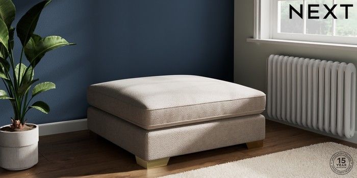 7.3.1 Buy Stamford Grand Relaxed Sit Extra Large Footstool Boucle Chenille Light Natural Square Angle - Brushed Brass from the Seasons online shop Click here to use our website with more accessibility support, for example screen readers