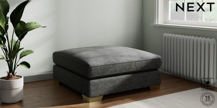 7.3.1 Buy Stamford Grand Relaxed Sit Extra Large Footstool Boucle Weave Easy Clean Charcoal Grey Square Angle - Brushed Brass from the Seasons online shop Click here to use our website with more accessibility support, for example screen readers