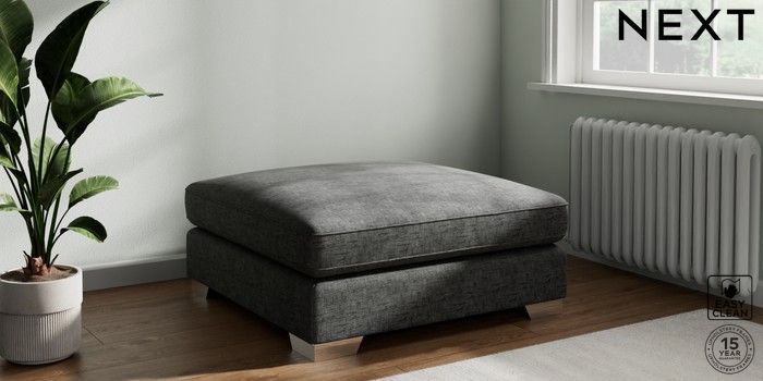 7.3.1 Buy Stamford Grand Relaxed Sit Extra Large Footstool Boucle Weave Easy Clean Charcoal Grey Square Angle - Chrome Metal from the Seasons online shop Click here to use our website with more accessibility support, for example screen readers
