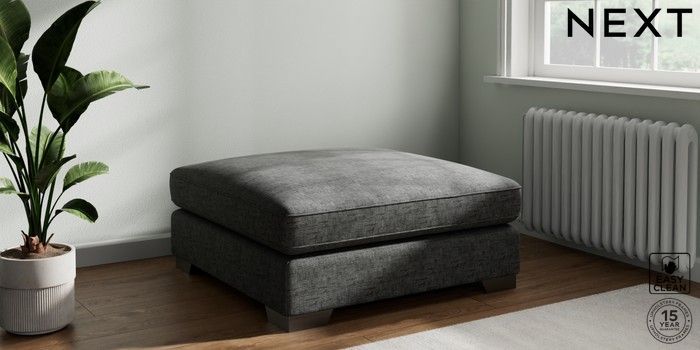 7.3.1 Buy Stamford Grand Relaxed Sit Extra Large Footstool Boucle Weave Easy Clean Charcoal Grey Square Angle - Gunmetal from the Seasons online shop Click here to use our website with more accessibility support, for example screen readers