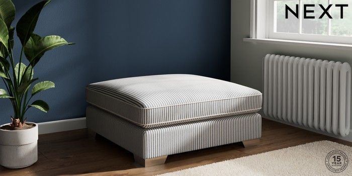 7.3.1 Buy Stamford Grand Relaxed Sit Extra Large Footstool Chenille Stripe Slate Blue Square Angle - Chrome Metal from the Seasons online shop Click here to use our website with more accessibility support, for example screen readers