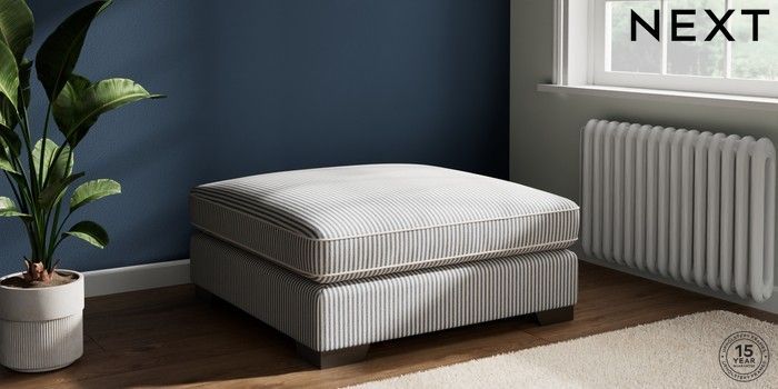 7.3.1 Buy Stamford Grand Relaxed Sit Extra Large Footstool Chenille Stripe Slate Blue Square Angle - Gunmetal from the Seasons online shop Click here to use our website with more accessibility support, for example screen readers